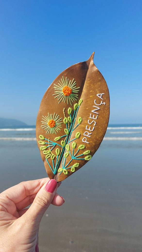Aprenda a coletar, desidratar e executar bordados simples em folhas secas com Curso Bordado em Folha Seca - Terapia do Pontinho.